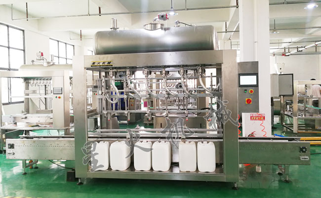 在化工廠中,我們總是能看到倉庫里堆了很多25L的化工桶,這些容器是化工行業比較常見的類型,潤滑油、添加劑、化學試劑、鋰電池電解液等都是如此。這些液體化工產品看起來和其它液體物料沒什么區別,但因為其本身的特殊性質,在灌裝時要求還是比較嚴格的。江蘇灌裝機廠家打造的全自動25L化工稱重灌裝機可以說是專門為液體化工產品灌裝而設計的,這種類型的液體灌裝機,都具有灌裝精度高、灌裝速度快、生產效率高的特點,非常適合化工行業的大批量大重量產品灌裝。